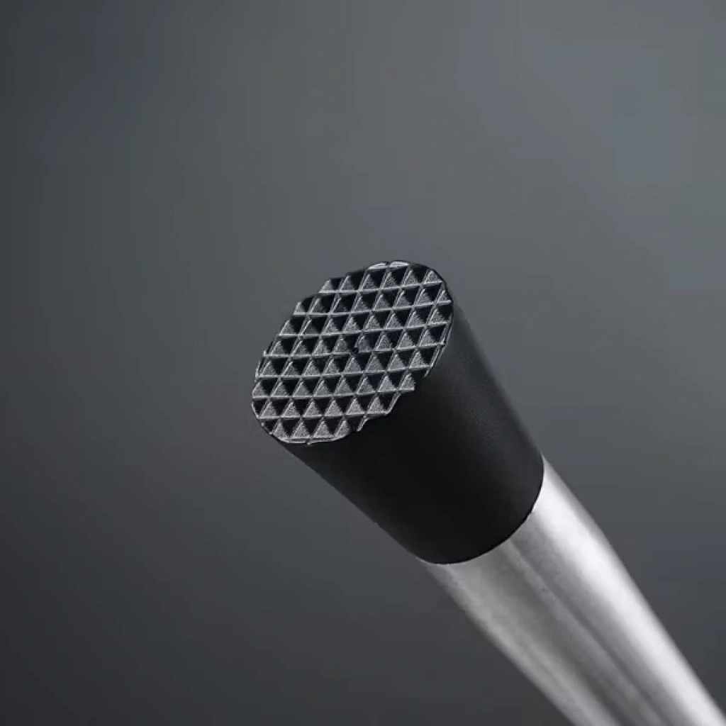 BUZ KIRMA ÇUBUĞUÜrün ÖzellikleriBuz Kırma Çubuğu, kokteyl hazırlarken veya içecekler için buz kırma ihtiyacını pratik şekilde karşılayan dayanıklı bir bar aksesuarıdır. Paslanmaz çelik gövdesi sağlam ve uzun ömürlü kullanım sunarken, alt kısmındaki tırtıklı kırma yüzeyi sayesinde buzları hızlı ve zahmetsiz şekilde parçalamanıza imkân tanır. Sadece buz kırmak için değil, meyve ezme, kokteyl aromalandırma ve içecek hazırlama işlemlerinde de çok amaçlı olarak kullanılabilir. Ergonomik tutuş sağlayan yapısı el yorgunluğunu azaltır ve profesyonel bar kullanımı kadar ev kullanımı için de idealdir. Şık tasarımıyla her bar setine uyum sağlar.Paket İçeriği1 adet Buz Kırma Çubuğu
