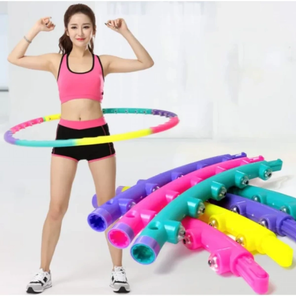MASAJ BİLYELİ HULAHOPÜrün ÖzellikleriMasaj bilyeli hulahop, formda kalmak ve vücut şekillendirmek isteyenler için mükemmel bir egzersiz aracıdır. Düzenli kullanımda bel ve karın bölgesindeki yağların yakılmasına yardımcı olur, kasları sıkılaştırarak fit bir görünüm kazandırır. İç kısmında yer alan masaj bilyeleri, egzersiz sırasında kan dolaşımını hızlandırır ve vücuda masaj etkisi yaparak rahatlama sağlar. Renkli ve modüler tasarımı sayesinde kolayca takılıp sökülebilir, taşıması ve saklaması pratiktir. Dansla birleştirilen hulahop egzersizleri hem eğlenceli hem de yüksek kalori yakımı sağlar. Saatte 700 kaloriye kadar enerji harcatabilir. Günde 1-2 kez, 20 dakikayı geçmeyecek şekilde düzenli kullanım önerilir. Sağlam plastik yapısı uzun ömürlü kullanım sunarken 98 cm çapıyla hem başlangıç hem ileri seviye kullanıcılar için uygundur.Paket İçeriği1 adet Masaj Bilyeli Hulahop